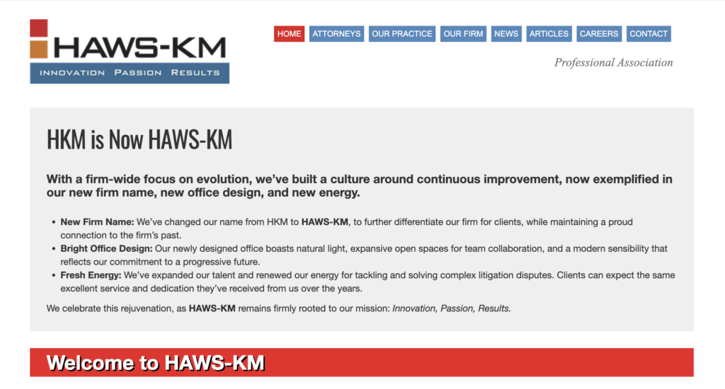 Haws-KM had built a national reputation through high-profile litigation, but their website told a different story, static, difficult to manage, and out of step with the level of work they were doing.